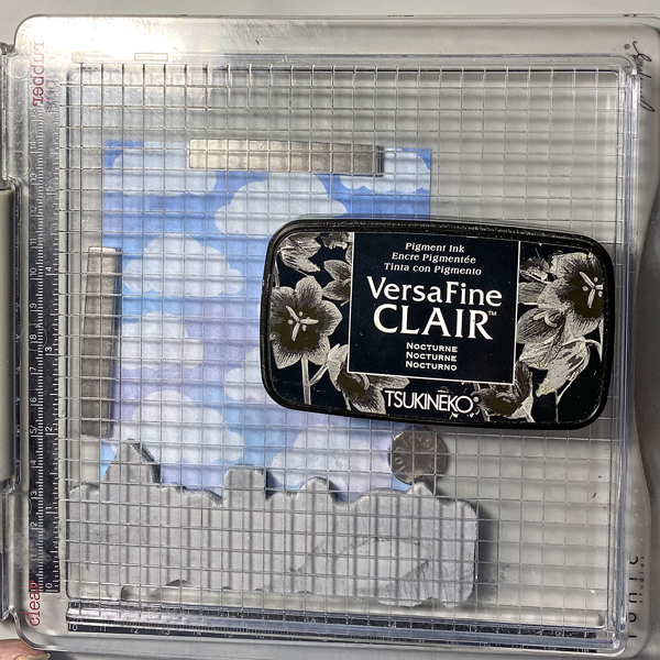 Ink the stamp with Nocturne VersaFine Clair Ink and stamp. Re-ink and stamp again if needed. Remove the stamp and heat set the panel.