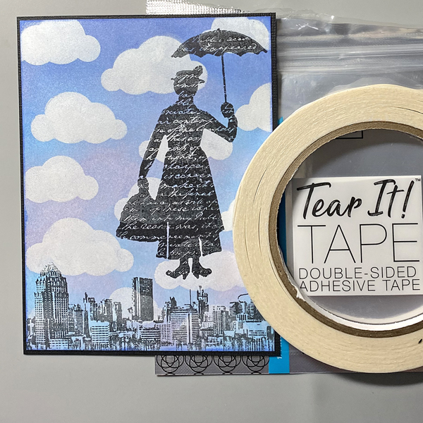 Use Tear It! Tape to adhere the image panel to the card.