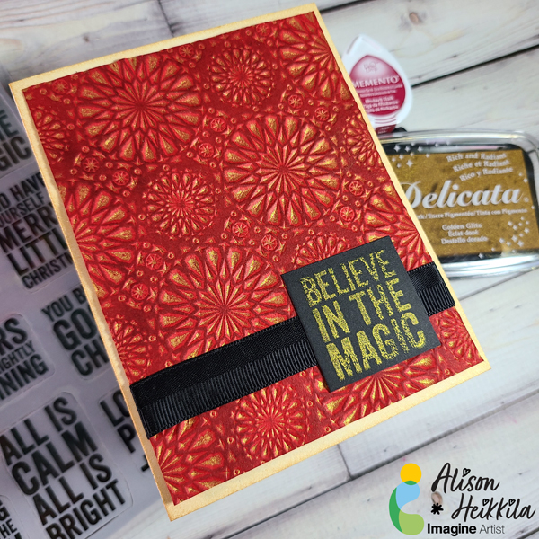 Greetings! It’s Alison Heikkila. I recently watched a video from Jennifer McGuire that was all about inking embossing folders to create beautiful inky and dimensional cards easily. I wanted to give her techniques a try using inks from Imagine. I also decided that this would be a great opportunity to make a Christmas card. You can check out my YouTube video below.