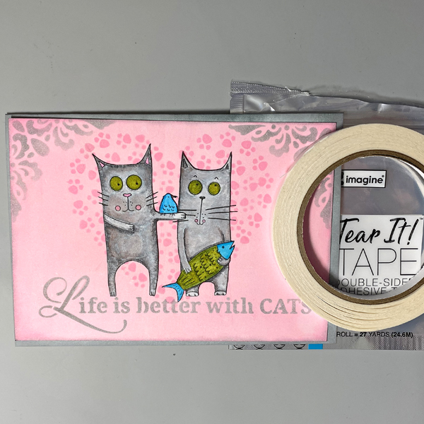 Cats rule the internet and my heart. Here’s a quick card created with inks, stencils, and white paper.