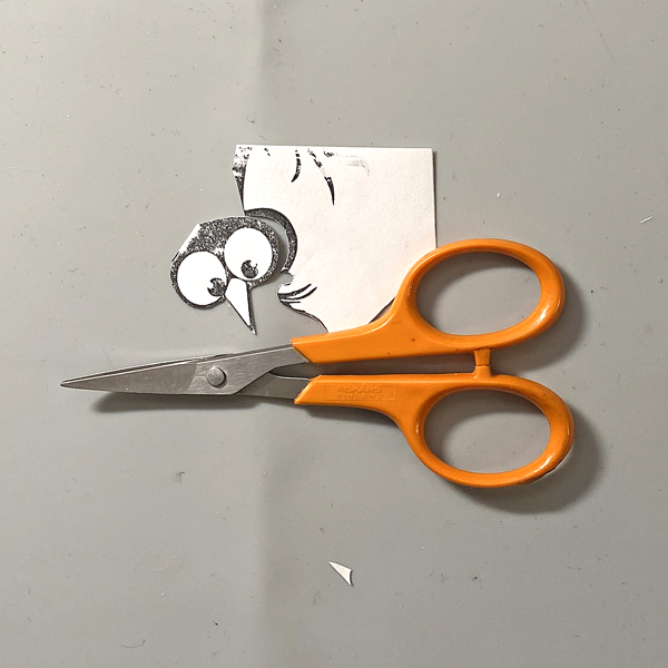 Use watercolor markers to color the bird’s eyes and beak. Use a white gel pen to add highlights to the eyes and beak. (No photo, sorry!)