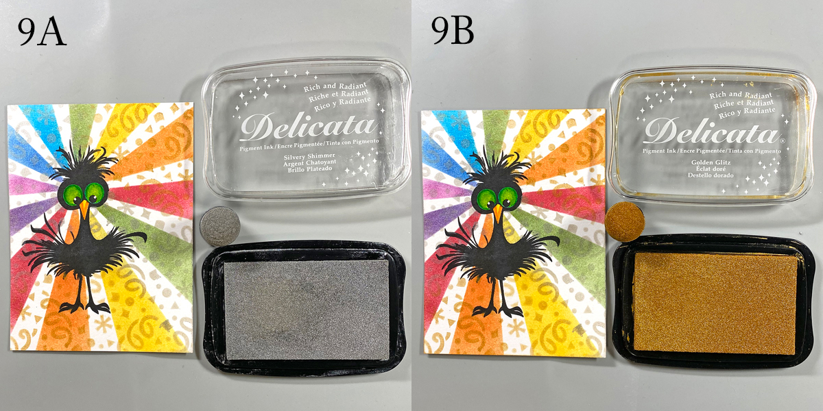 Use a separate Sponge Dauber to edge the top right and bottom left with Golden Glitz Delicata ink (9B).