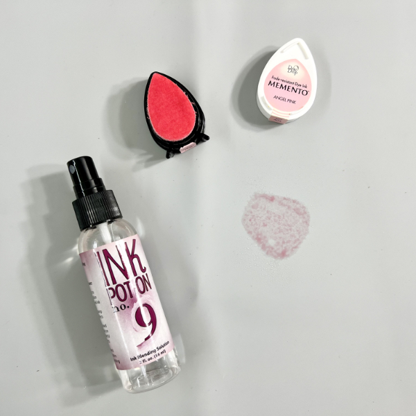 Dab the Memento ink on the craft mat and then spray with some of the Ink Potion No. 9.