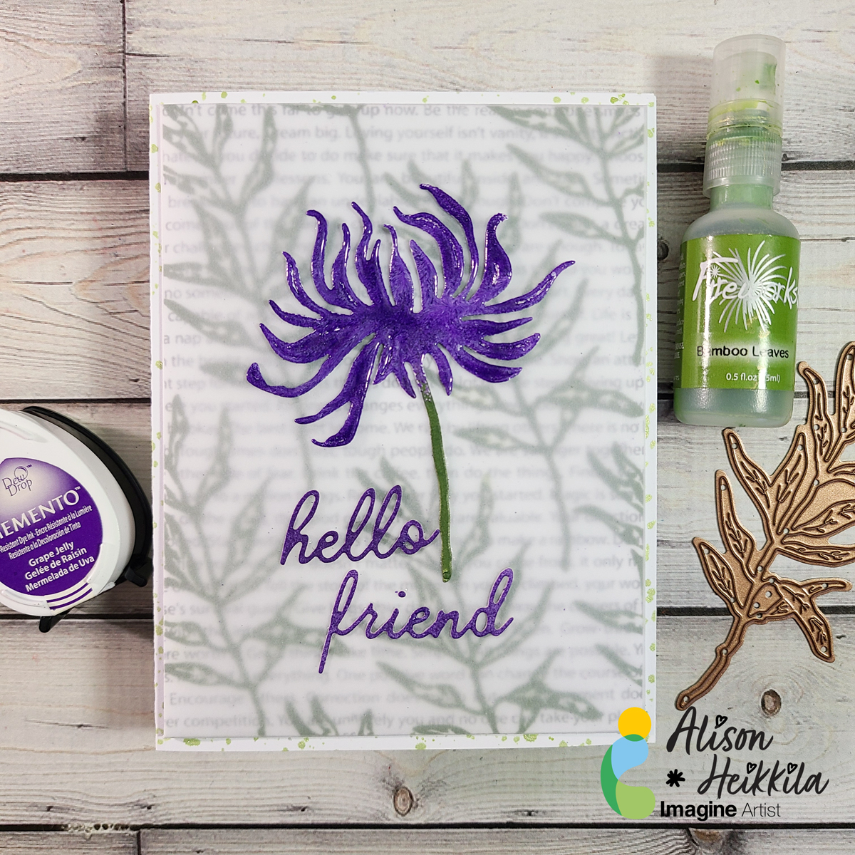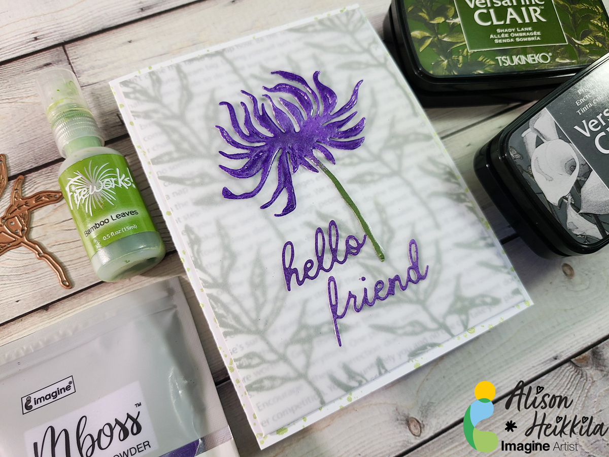 Hello! This is Alison Heikkila. My second video for Imagine this month once again focus on dies and how to use them creatively with inks. We’re making a pretty floral encouragement card, and I hope it gives you some ideas on how to use your dies and inks together.