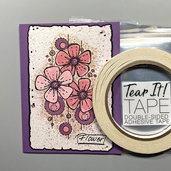 Create an A2 card from purple cardstock. Use Tear-It! Tape to adhere the image panel to the card.