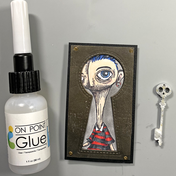 Use On Point Glue to adhere the key to the front of the keyhole image panel.