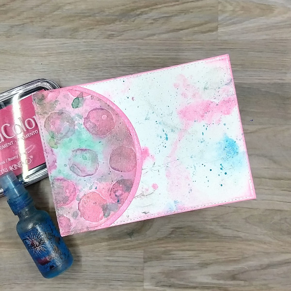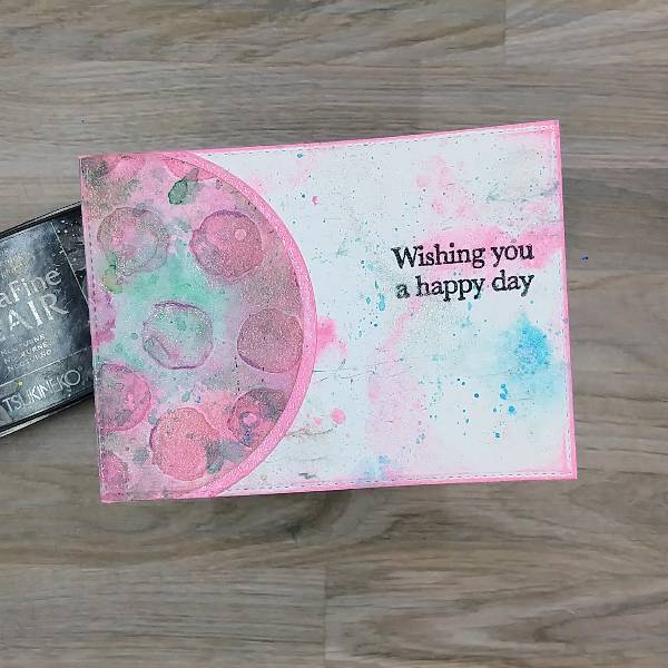 die cut again to trim the circular die cuts. The edges were ink blended with more Pink