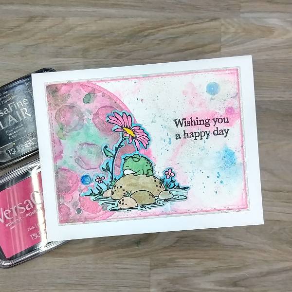 Pink VersaColor Pigment ink pad onto the watercolor paper.