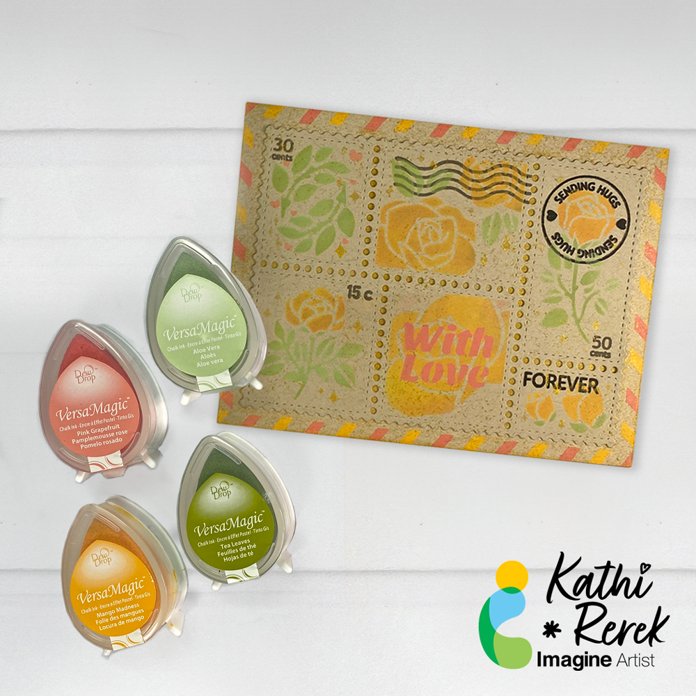 It’s summer and the roses are in full bloom. Let’s make a Rose Postage Card with VersaMagic and Delicata Inks!