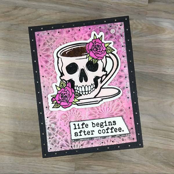 (Optional step: Heat emboss the coffee with more clear embossing powder.)