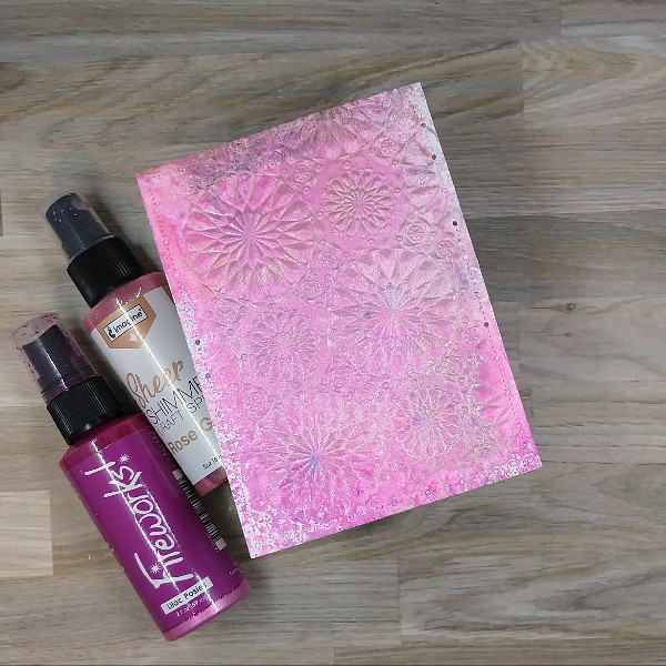 removing the watercolor panel, spray more Rose Gold Sheer Shimmer Craft Spray around the