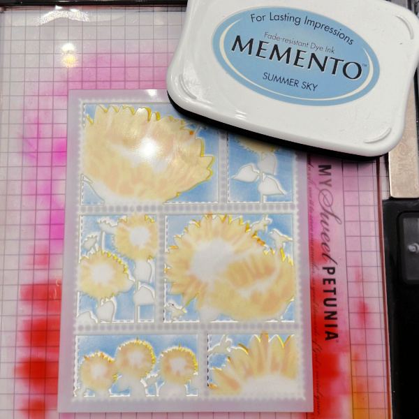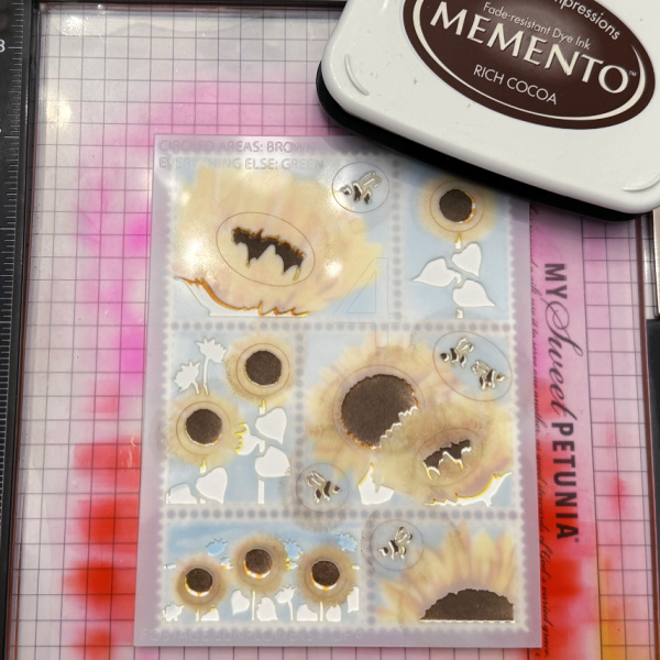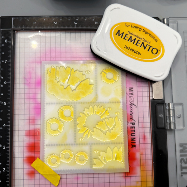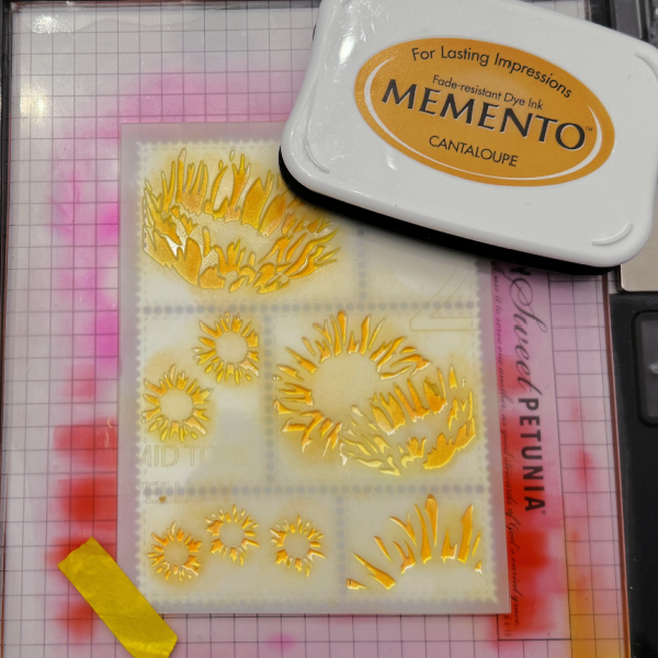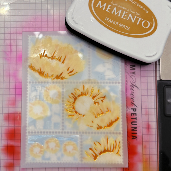 Color in the layers with different colors of ink. The first layer is Dandelion, and I have added photos of the color for each layer.
