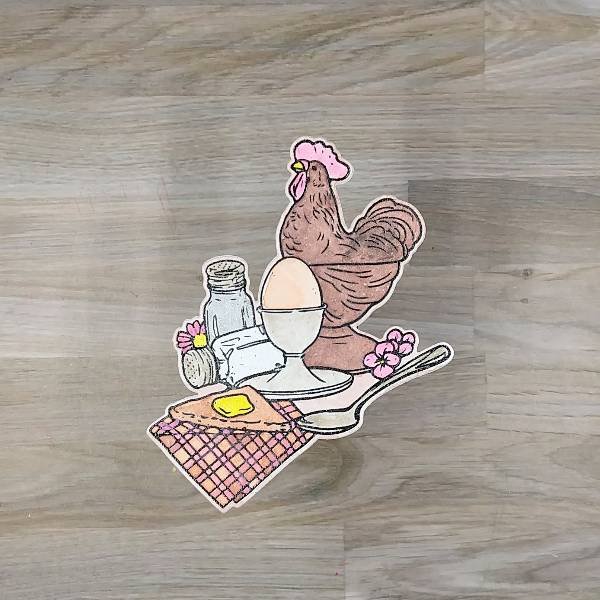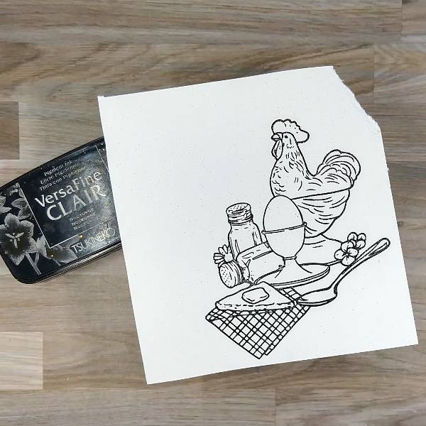 background panel. Glue the breakfast scene (the main stamped image) over the white glitter
