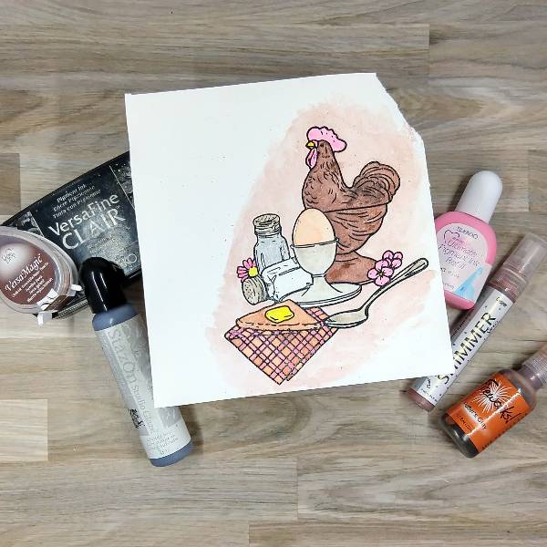 – I colored the rooster jar with Jumbo Java VersMagic Chalk Ink mixed with water.