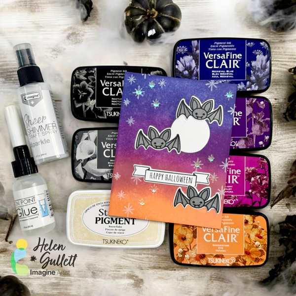 Hello crafty friends! Today, we are going to make this Halloween theme card using color blending techniques with VersaFine Clair ink pads and stamping with Staz-On Pigment ink pad.