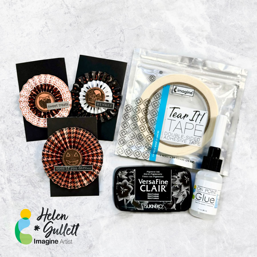Add some of the On Point Glue on the back of the sentiment strips and then add them to the pinwheels.
