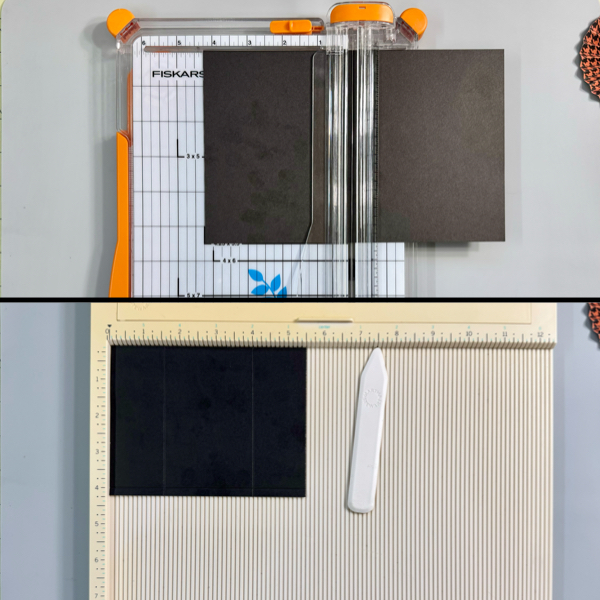 Cut a couple of black cardstocks into 4.25 inch x 5.5 inch