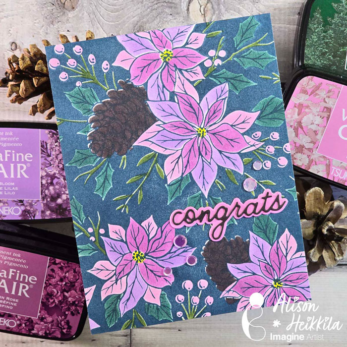 Hello! I’m Alison Heikkila. For my latest video for Imagine, we will be using some of the newest VersaFine Clair Ink colors along with a new BetterPress Plate from Yana Smakula and Spellbinders. The card was made with a Winter Wedding theme in mind, but you can change this to suit your needs.