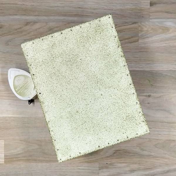 Swipe Pistachio Memento Ink across the glitter cardstock to color it green.