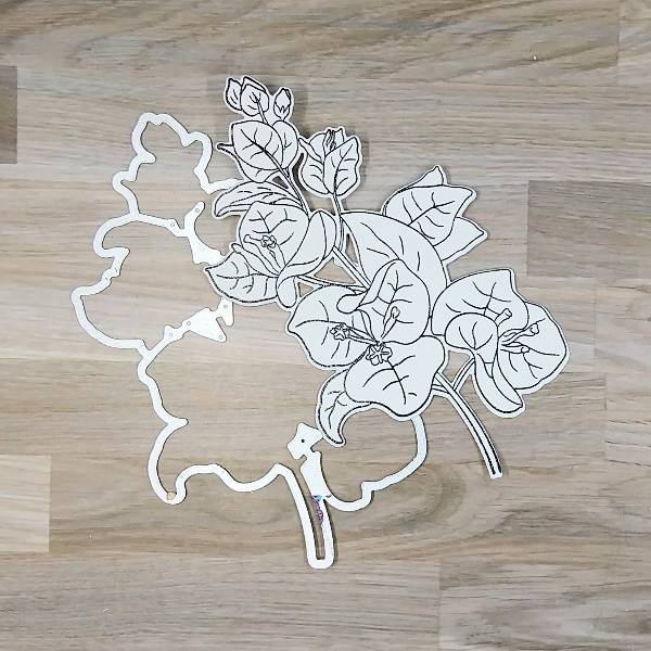 Glue the large floral die cut image onto the sprayed panel and then trim the edges of the floral die.