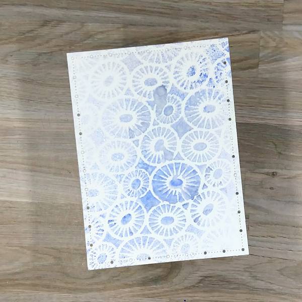 Die cut the sprayed background panel with the second-largest die from a nested A2-sized panel die set.