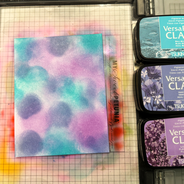 Using the three lighter colors randomly add them to a white panel cut to A2 size.