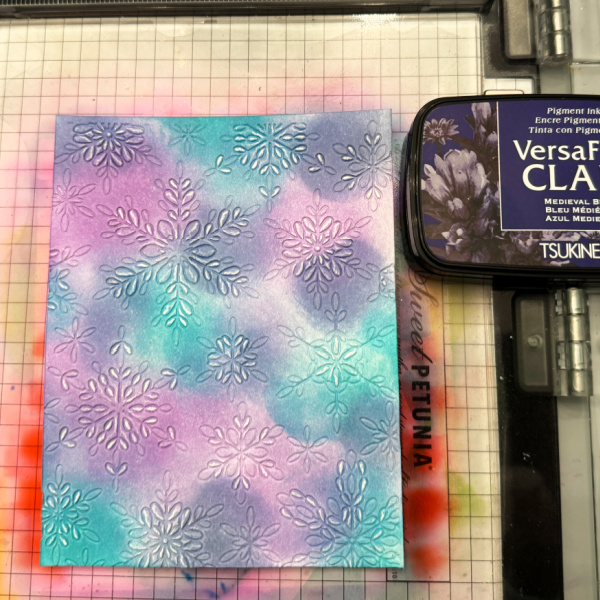 Place the blended panel inside of the 3D embossing folder and run through the die cutting machine.