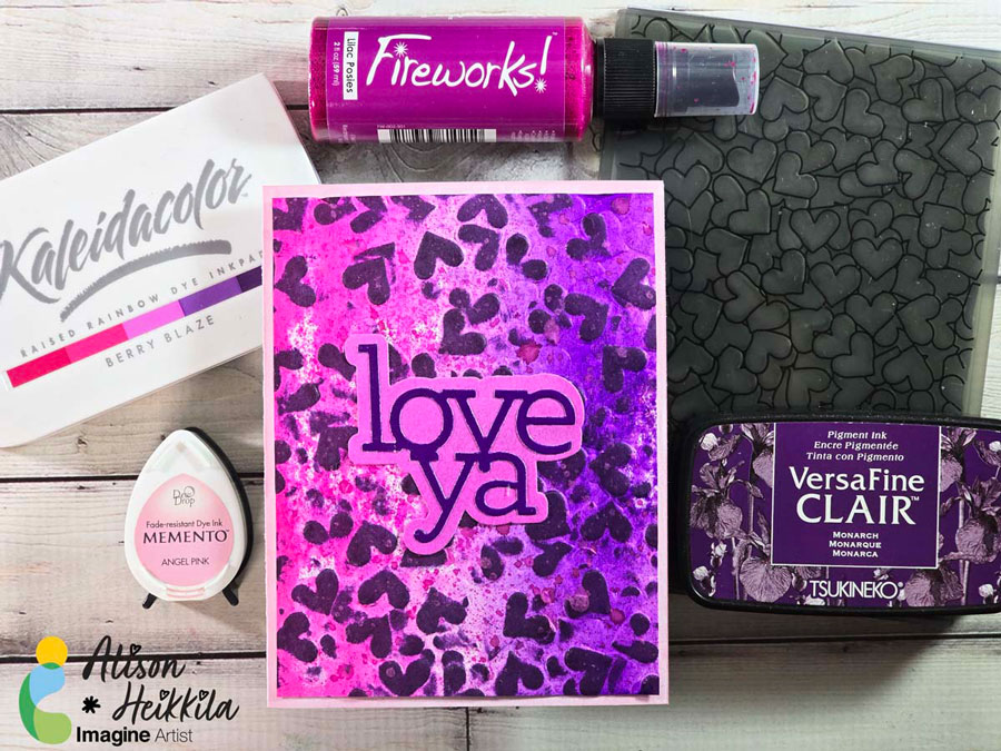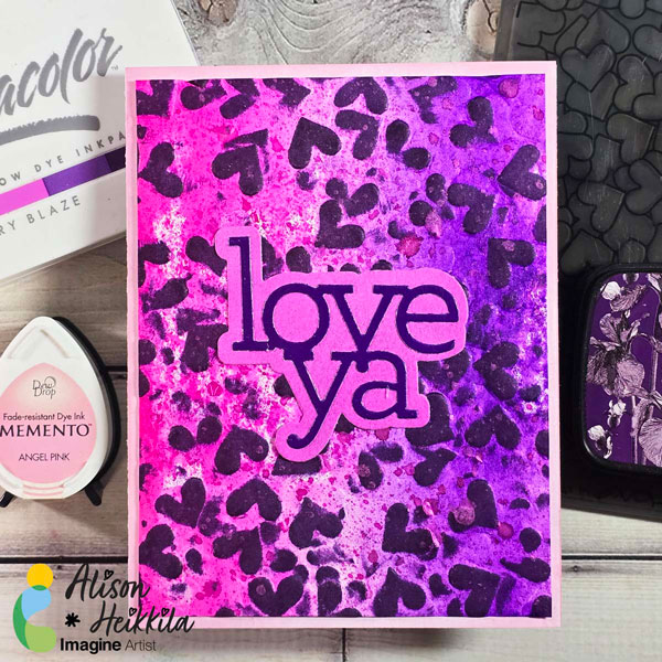 Hello! Alison Heikkila here. Today we’re making a love-themed card, but not really a romantic card. This can totally be used for your spouse or partner, but I intended it to be more for your bestie, a sibling, etc. The colors and textures of this card are really impactful…even more so in person.