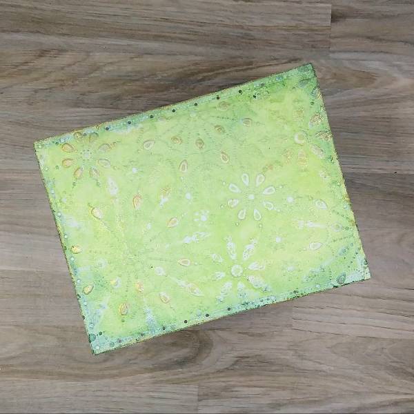 Watercolor the embossed panel with more of the gold watercolor and allow to dry.