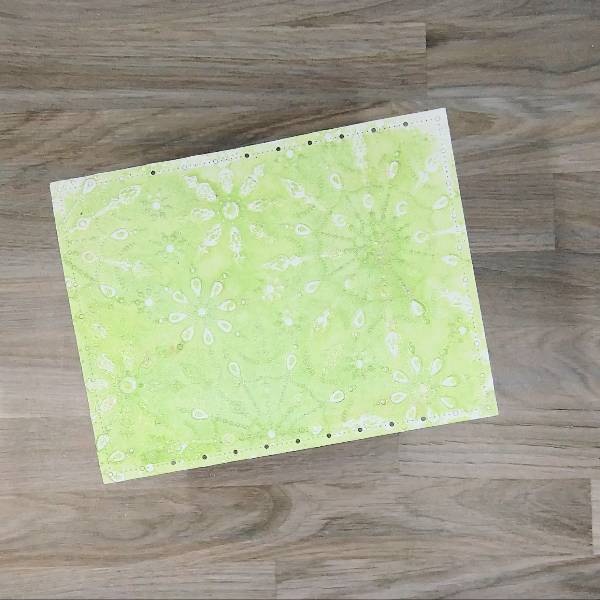 Spray New Sprout Fireworks! Shimmery Craft Spray directly onto an embossing folder. Place a die cut watercolor panel into the embossing folder and run it through a die cutting machine. Set the panel aside to dry.
