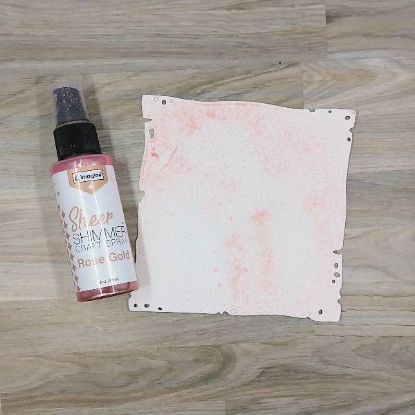 Spray the internal part of the die cut with Rose Gold Sheer Shimmer Craft Spray and allow to dry.