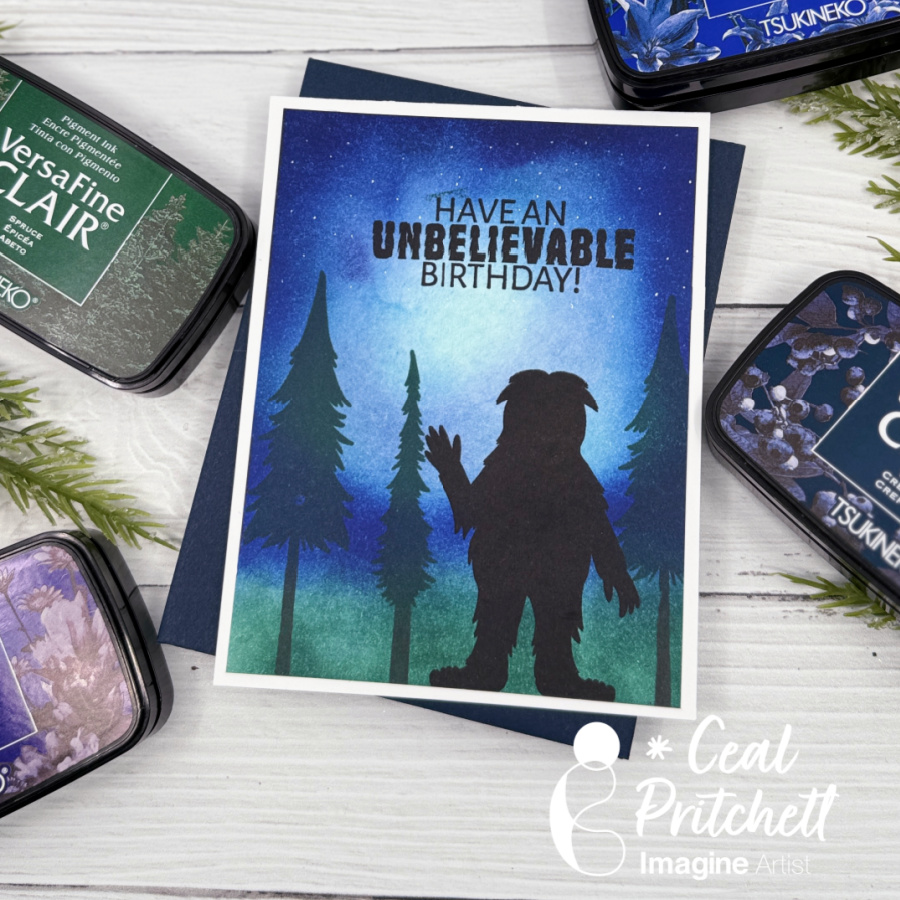 Hello crafty friends!, It’s Ceal, here. Today I am going to show you how to create this “Unbelievable” Big Foot birthday card using some VersaFine Clair inks.