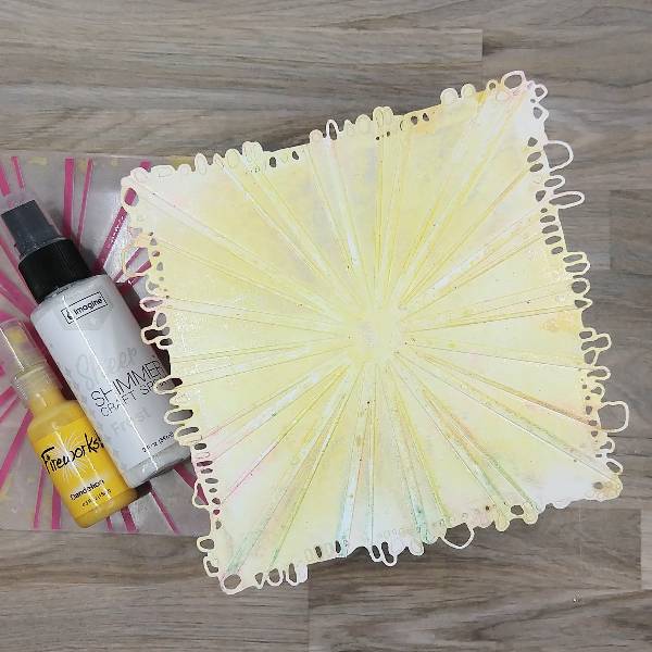 - The flowers were watercolored with Angel Pink Fireworks! Shimmery Craft Spray on the petals. After the petals dried, the center of the flower and the center part of the petals were water colored with Cantaloupe Shimmery Craft Spray. Finally, the outside parts of the petals were colored with Lulu Lavender Memento Dual Marker.