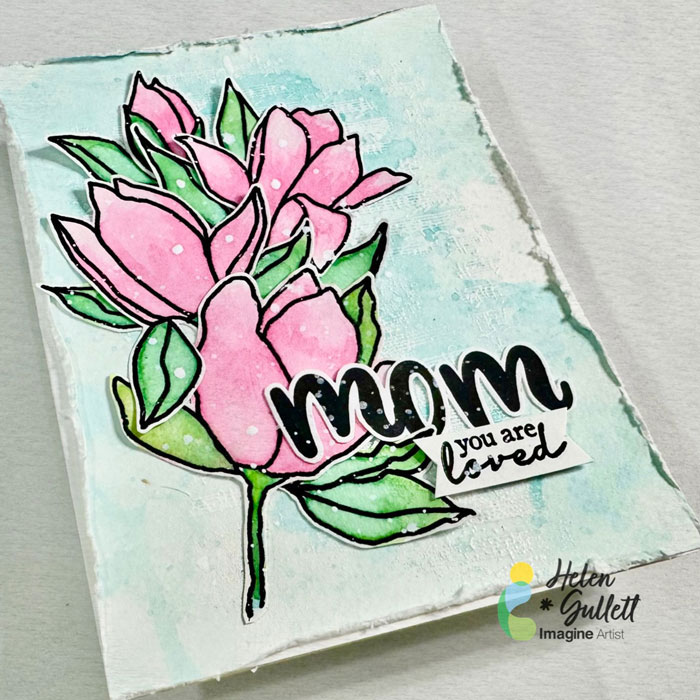 This simple mixed media card is done. I love how it turns out and hopefully you do, too. I like how VersaColor ink pads are not just for stamping but also work as a watercoloring medium.