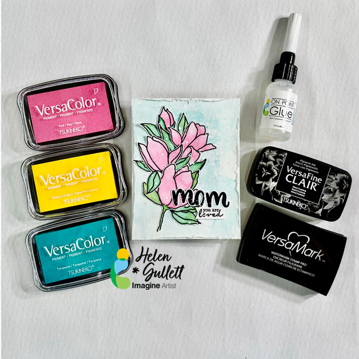 Hello crafty friends! Today, I wanna share with you a fun technique to make a card for a mom. We are going to do some watercoloring with VersaColor ink pads and also heat-embossing technique. So… Let’s get some ink pads and watercoloring together!