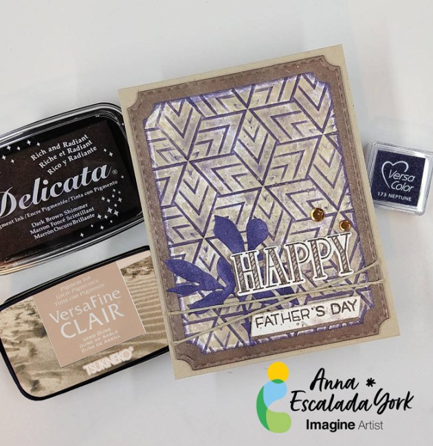 I wanted to make my Father-In-Law’s Father’s Day Card with a variety of browns and a pop of another color. So I picked Neptune VersaColor ink for a pop of color on the monochromatic background.