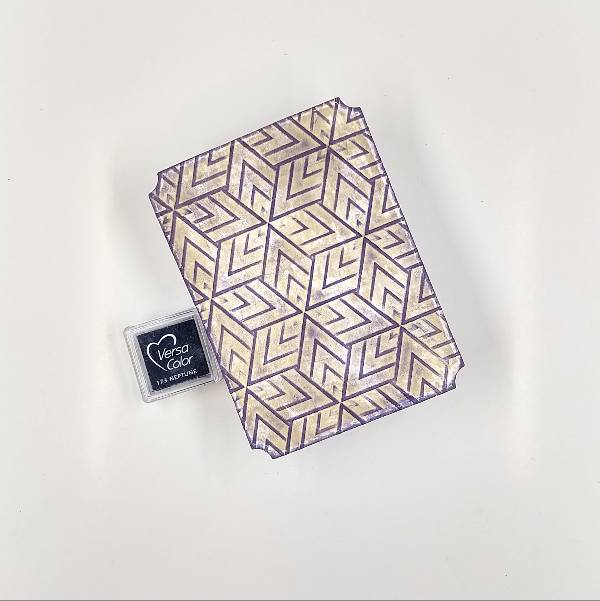 Glide a Neptune VersaColor ink across the panel. The raised (embossed) parts of the panel will be colored with the Neptune ink, and the debossed parts of the panel will stay the Sand Dune color. Then run the Neptune VersaColor pad across the edges of the panel to color the border of the panel as well.