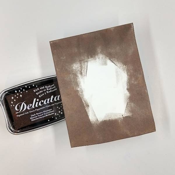 Press the Dark Brown Shimmer Delicata ink pad onto another small piece of watercolor paper.