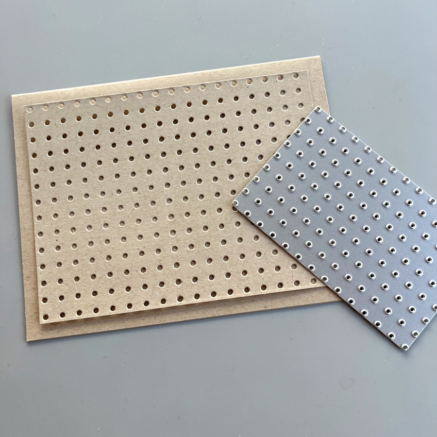 One of the things I love about this die set is that it includes this pegboard die. You can extend the size of this die by matching up the holes on the die with a row of die cut holes and die cut again. They will fit like a puzzle and it almost feels like it is “locked” once the fitting is matched up.