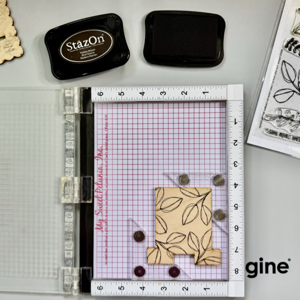 Stamp the phrases on the wood with the StazOn Timber Brown ink pad.