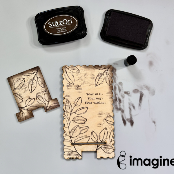 This is how the wood phone stand looks when it is done. The StazOn ink pads are
