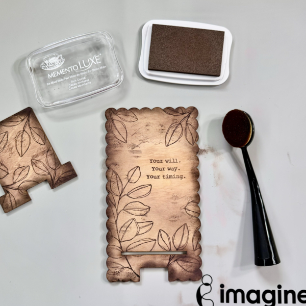 Repeat step 1 to stamp on the smaller part of the wood phone stand. I used the smaller