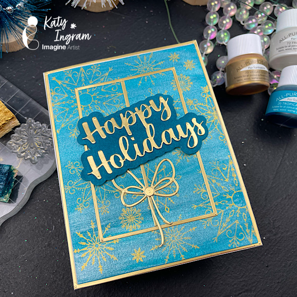 Hello Friends! Katy here with another quick project using All-Purpose Inks. I used my simple swiping technique for the background and then used Vegas Gold All-Purpose Ink to stamp my snowflakes.I kept things even simpler by using a kitchen sponge to ink up my stamps.