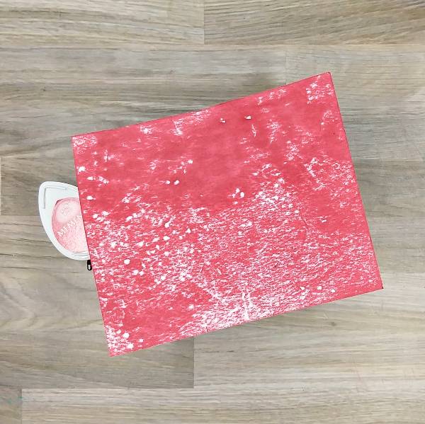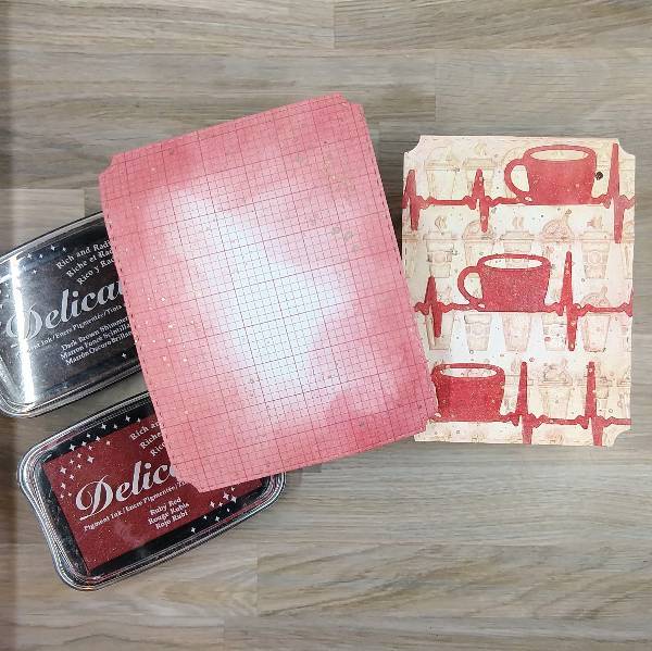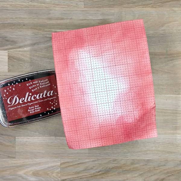 Ink blend a piece of patterned paper with more of the Ruby Red Delicata ink using a sponge dauber.
