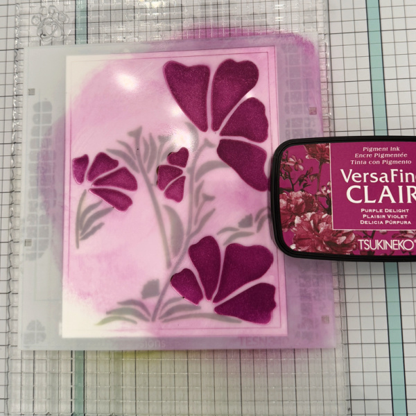 Using layer 2 of the stencil set and Purple Delight, color the flowers.