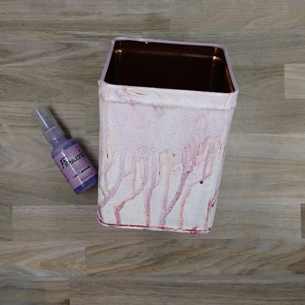 Spray all four sides of the tin with Lulu Lavender Fireworks! Craft Spray and allow to dry.