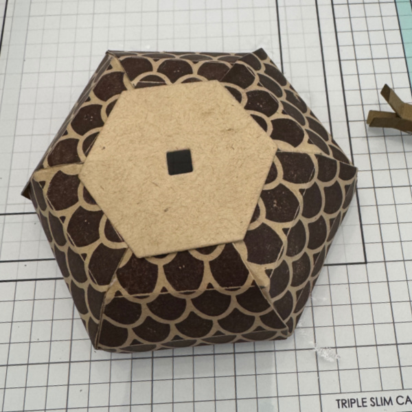 Align the large (bottom) pieces of the acorn on the hexagon as shown. Tip: I used liquid glue to allow me to move them as needed.