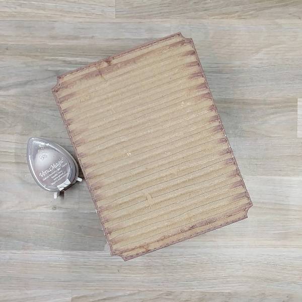 Die cut a piece of corrugated cardboard with the largest die from an A2-sized nesting panel die set. Then brush the edges of the panel with Jumbo Java VersaMagic Chalk Ink.