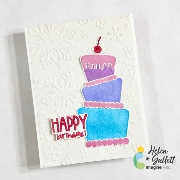 This card is easy and fun to make, especially the Brilliance Pearlescent inks give extra sparkle to the cake!