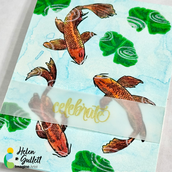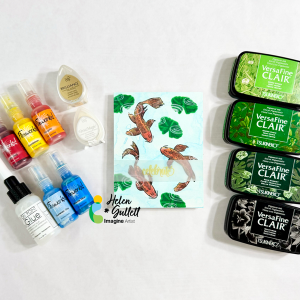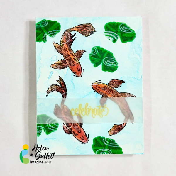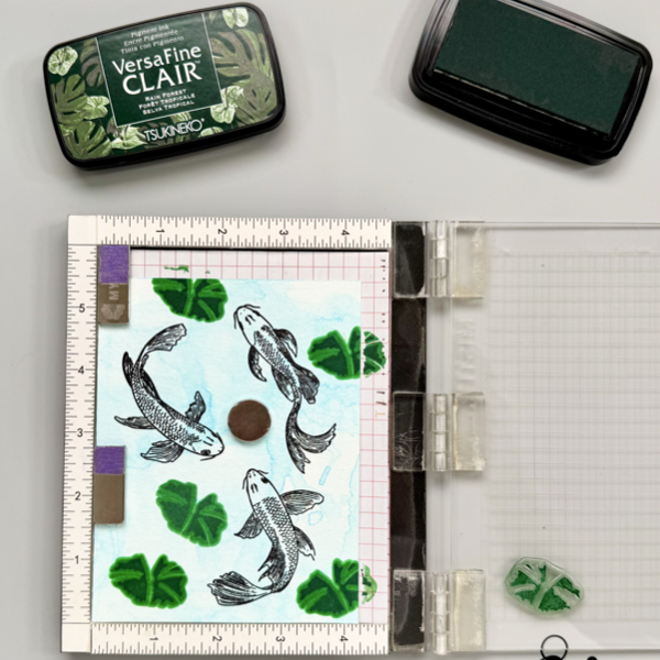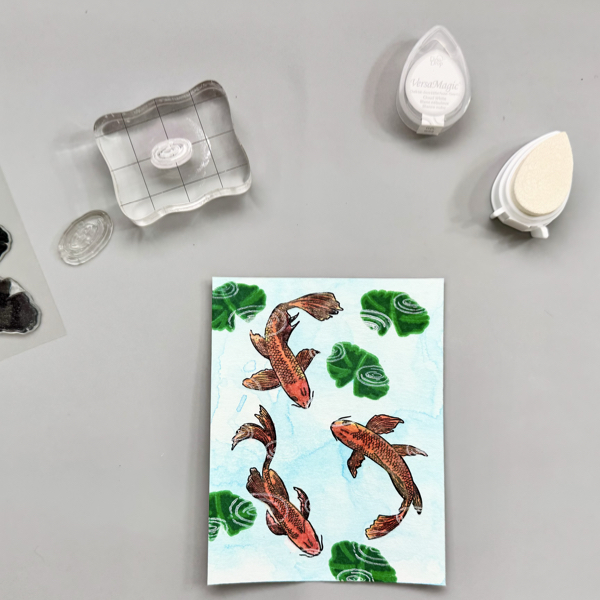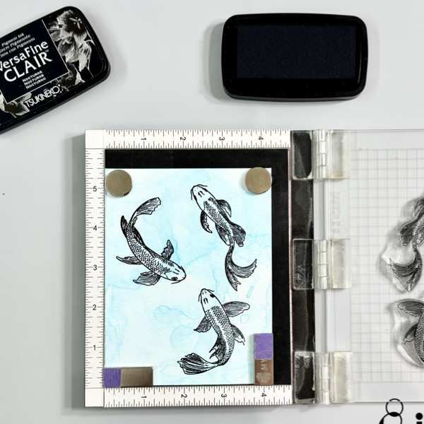 Stamp the fish images on it with the VersaFine Clair Nocturne ink pad. Repeat it if needed.